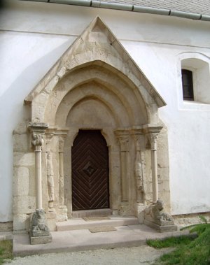 A templomot 1784-ben építették újjá. Eredetileg a XIII. században korai gótikus stílusban készült. Magyarországon egyedülálló a oszlopszobros kaputípusa.