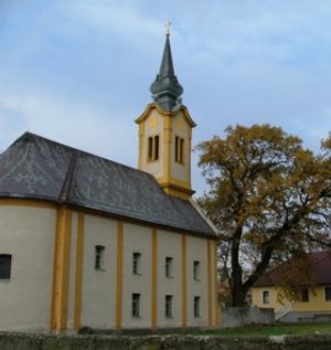 A templom jellege: késő barokk, különálló toronylábbal. Külső, belső formái egyszerűek. Kis teraszon áll a község hegyoldali vége felé, oltára délre néz. Régen csak evagélikusok voltak, ma már baptista és katolikus családok is élnek itt.